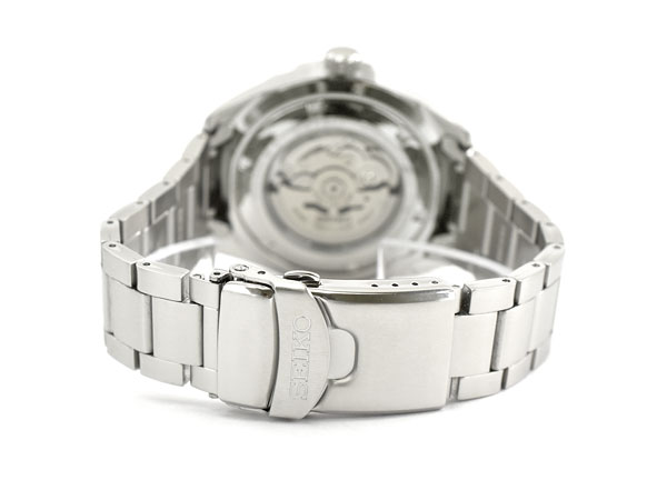 ケースバックはシースルーで機械特有の動きと美しいムーブメントの動きを目でも楽しむことが出来るセイコーの新しい自動巻き式腕時計です。
